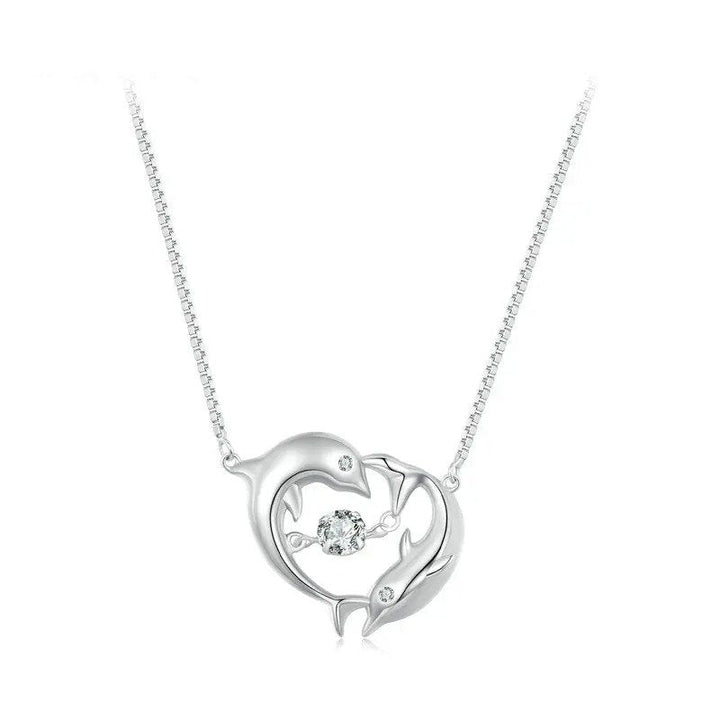 ? ¡¾Description¡¿Dolphins spirituality necklace, two dolphins in love around a heart shape, a dynamic stone in the middle, means happy love.