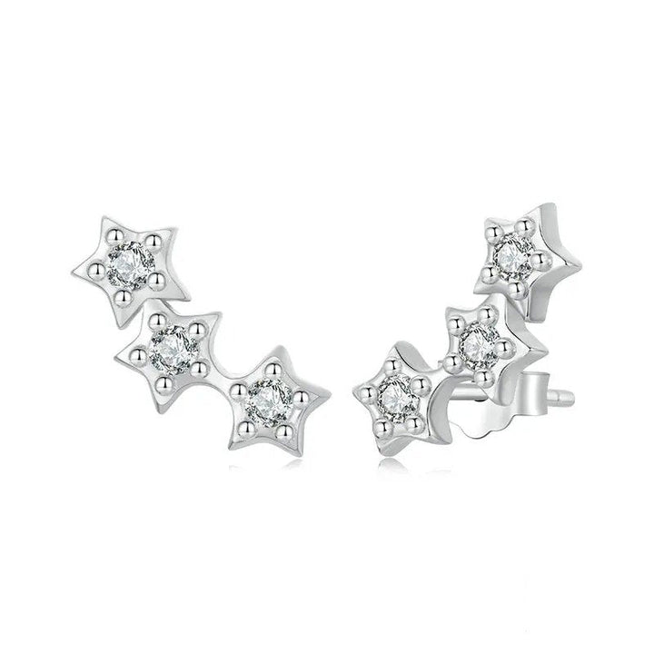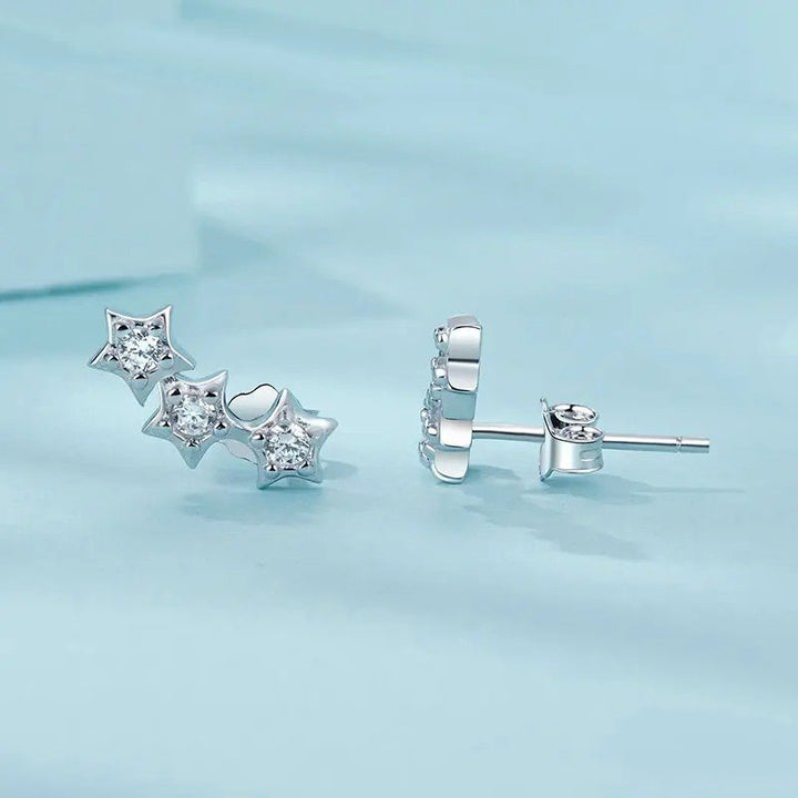 ? [Description] The shimmering star stud earrings symbolizes hope, dreams, and guidance. They convey a belief in positivity, upward striving, and the pursuit of dreams with the figure of stars.