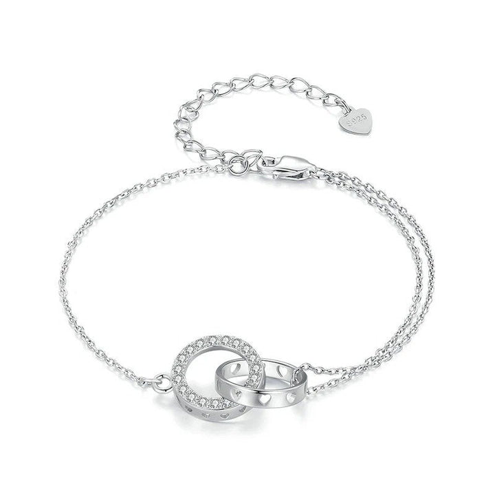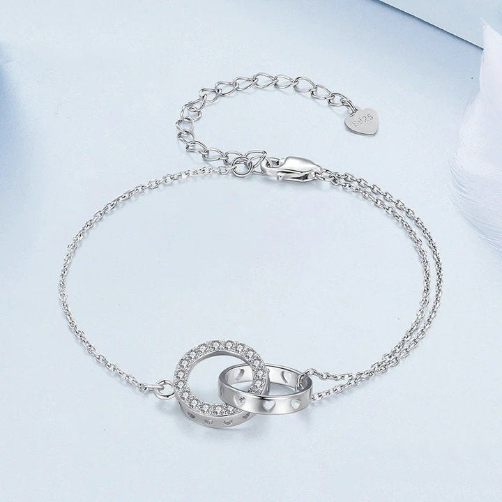 The Double Hoop Bracelet, with interlocking circles, is simple and versatile, symbolizing positivity. It can bring you a chain of good luck, one link at a time.